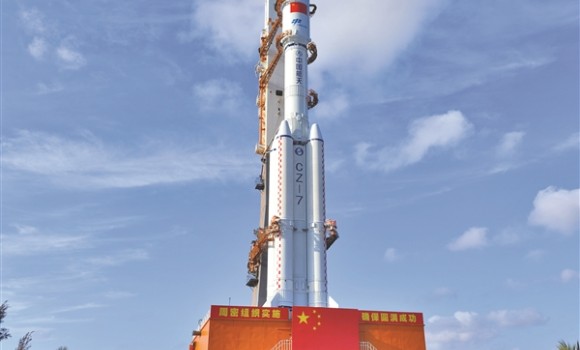 图为1月15日,天舟七号货运飞船与长征七号遥八运载火箭组合体在垂直转运中。 新华社发 (胡煦劼 摄) 新华社海南文...