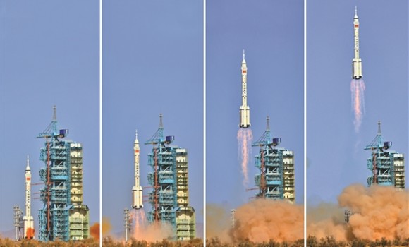 这是神舟十七号载人飞船发射升空过程(拼版照片,10月26日摄)。10月26日11时14分,搭载神舟十七号载人飞船的长征二号F遥...
