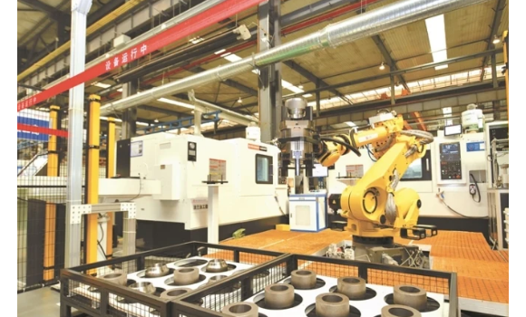 太重榆液生产车间自动化、智能化生产线。 记者 杨 洋 摄 随着生产指令的下达,灵活的巨型机械臂精准地抓取、搬运、加工零...
