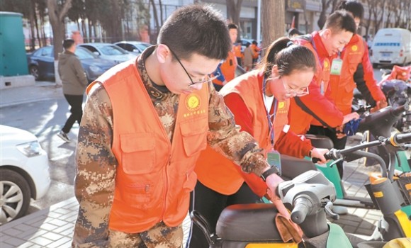 榆次二中学生正在清洁共享单车。记者 崔斌 摄 为传承和弘扬雷锋精神,3月2日,榆次二中组织高二年级20余名学生骨干开展清...