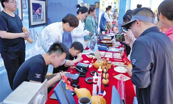 葫芦烙画。 记者 冀古陶 摄独轮车削面表演。 记者 冀古陶 摄 “对于古陶瓷中的铁锈,我们结合3D打印技术,经过清洗、粘接...