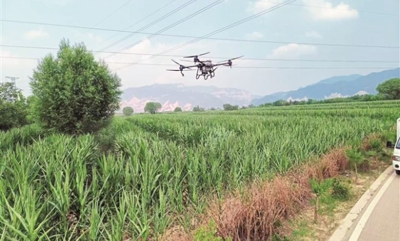 无人机正在田间作业。 本报通讯员 宋笃明 摄 盛夏时节,沿着山间公路驶往介休市龙凤镇西宋壁村,两侧的谷杆迎风摇曳,婆娑...