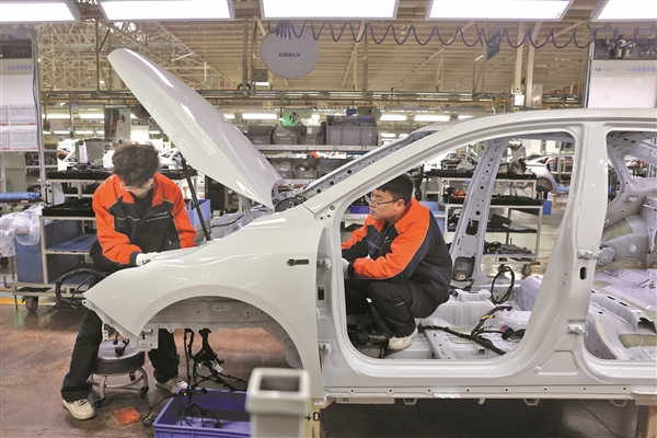 3月17日,在吉利汽车晋中基地生产车间内,员工们正在加紧生产。吉利汽车晋中基地去年累计生产乘用车11.15万辆,实现产值224.1亿元,税收5.13亿元;生产商用车9105辆,实现产值8.95亿元,税收1200万元,在我市及省内发展和扶持36户配套企业,有力拉动了地方经济发展。