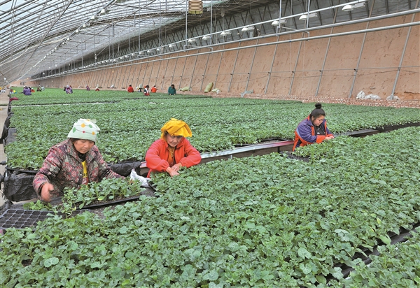 4月2日,太谷区巨鑫现代农业示范园育苗拱棚内,工人们正在拣选西瓜秧苗。该园区与中国农业大学、中国农科院蔬菜研究所等科研院所建立长期技术合作关系,以科技带动农业,积极探索产、学、研一体化模式,园区育苗工程中心已收集保存3000余份优良种质资源和60余个具有自主知识产权的新品种,年出产种苗1500余万株,促进了本地和省内蔬果新品种的快速流通和推广普及。