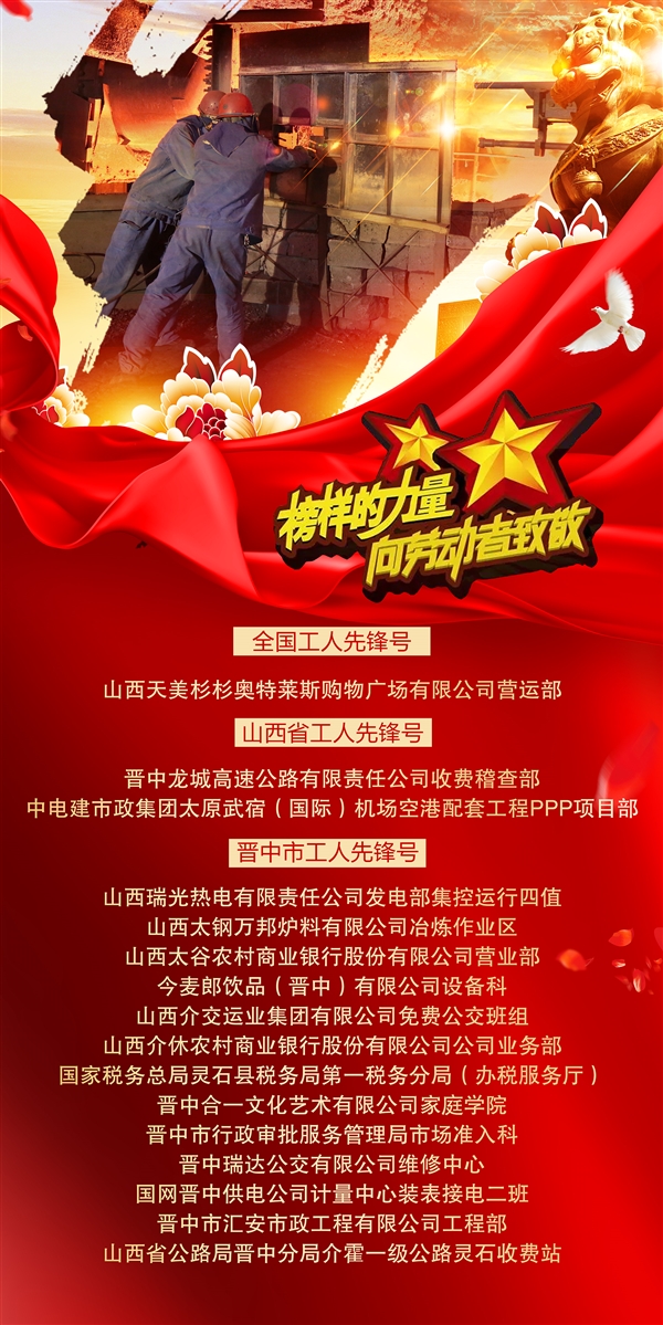 太行代有好儿女,汾水辈出真豪杰。逆风而行者,脸庞勒痕尚存;赴汤蹈火者,身上灼伤犹在。金盾卫士,神色冷峻,但其忠肝义胆,常怀赤子仁爱;煤海蛟龙,容颜黢黑,然其明眸皓齿,永葆珠玉情怀。塔吊车高映日月,脚手架密建楼台。三尺教鞭,指引学子鹏程路;一把焊枪,熔铸工匠旷世才。持长帚,环卫工挥洒城市晚霞朝烟;悬飞绳,家政员呵护楼宇幕墙门面。疾驰于天涯海角,货车司机施展神行太保绝技;穿越在宽街窄巷,快递小哥张扬追风少年神采。业界翘楚叫响新晋商美誉,工艺大师擦亮老字号金匾。尚太锂电异军突起,奥特莱斯人潮如海。职教港,产业大军省内独秀;智创谷,科研团队天下为先。昔榆高速夜以继日创纪录,魏榆快车争分夺秒做表率。山西新能源汽车链主,吉利当仁不让;晋中钢焦煤产业领军,安泰冲锋在前。大学城产学研用引领时尚,小巨人专精特新打造品牌。示范区农高区先行区区区给力,玛钢镇玻璃镇牛肉镇镇镇出彩。