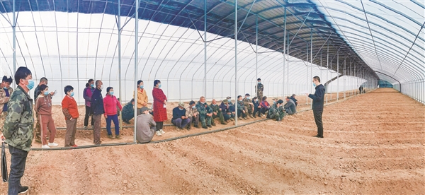| 图为王振文正在大棚里向农户们宣讲。 本报通讯员 张文军 摄 |