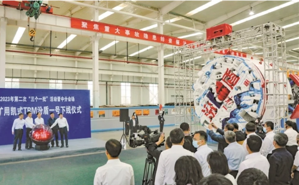 图为5月29日,山西汾西华益实业有限公司举行的矿用凯式TBM汾盾一号下线仪式。本报记者 张浩亮 摄