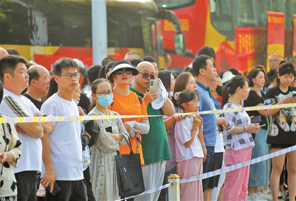 早晨7时许,各考点外,带队教师、家长“花式”助考,考生在安保人员的指引下,有序进入考场。榆次一中考点外,记者看到教体、卫健、城管、公安多部门联动组成现场服务保障队伍,引导行人和车辆有序通行,保障考点周边安全畅通。志愿者小组设置的“爱心驿站”为考生及家长提供了爱心座椅、应急药物、文具袋等贴心服务。8时30分,开考铃声响起。带队教师、家长在考点周边安静等待,路过的车辆纷纷停止鸣笛、依次驶离。全体工作人员无惧高温、不负热爱,全方位开启护航模式。