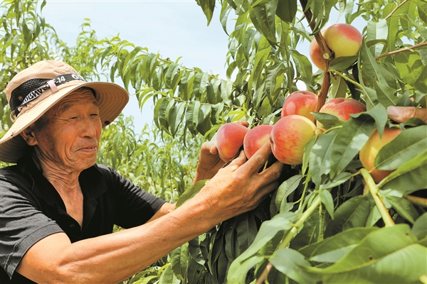 为更好适应市场需求,井神村着力提升果园管理水平,引进7个新品种,采用生物纳米有机硒等关键技术,使鲜桃果形端正、色泽艳丽、便于长途储运,并富含铁、硒、钾等微量元素,品质大大提升,销售渠道不断拓展,甜美的鲜桃成为桃农的“致富桃”“幸福桃”。