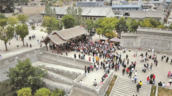 “双节”期间,静升古镇王家大院景区游人如织。 郑涛 摄