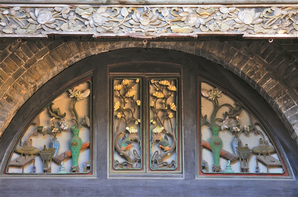 ④在灵石王家大院,以砖雕、木雕、石雕为主的雕刻艺术装饰分布在大院建筑群的每个角落。