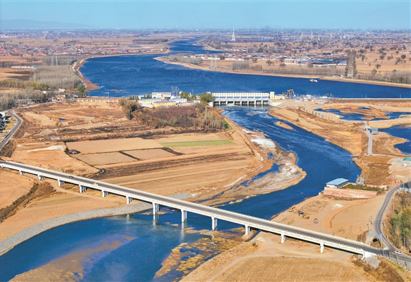 11月23日,位于平遥县境内的汾河三坝库区美景如画。清澈的汾河流经广袤田野,与两岸的美丽村庄、旅游公路和跨河桥梁等,构成了一幅人与自然相融共生的生态画卷。 本报通讯员 梁生仁 摄