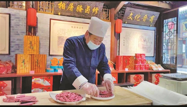 12月1日9时,记者见到国家级非物质文化遗产项目牛肉传统加工技艺第六代传承人王天明时,他正在生产车间忙碌着。