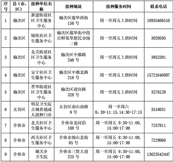 我市含XBB变异株抗原成分新冠疫苗接种门诊信息表