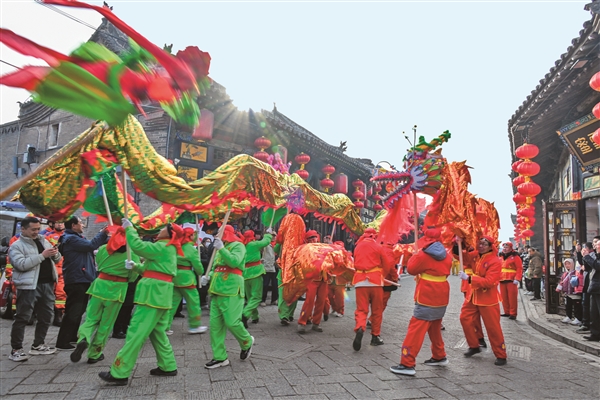 春节假期,平遥古城张灯结彩、满目火红,一派喜气洋洋的新年盛景。各地游客慕名而来,游古城、品文化,感受浓浓的年味儿。作为全国“古城过大年”系列活动的重要组成部分,2024平遥中国年以“龙腾新时代·活力中国年”为主题,策划推出“龙祥凤瑞迎新春、龙跃凤舞闹新春、龙章凤彩贺新春”三大板块15项活动。据统计,春节期间,平遥古城共接待游客62.64万人,同比增长131.75%。