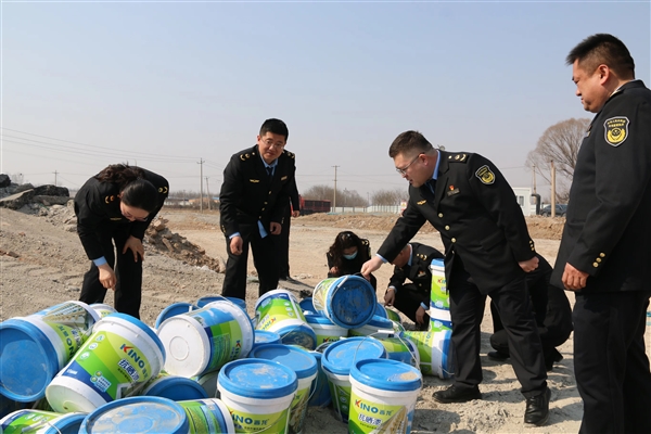 执法人员对伪劣外墙涂料进行绿色无公害销毁 通讯员 赵建军 摄