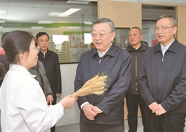 调研期间,唐登杰等先后深入晋中国家农业高新技术产业示范区和山西农业大学(省农业科学院)的有关重点实验室、科创平台、成果推广中心和龙头企业,实地了解技术研发、成果转化、平台建设、人才引育和现代农业发展等情况,并与科研人员亲切交流,对他们长期潜心专研农业科技给予充分肯定。他强调,种子是农业的“芯片”,种业事关国家粮食安全、事关农民增产增收。要深入实施种业振兴行动,加强核心技术攻关,强化种业协同创新,努力培育更多具有自主知识产权的优良品种,为“中国粮”主要用“中国种”贡献山西力量。要打好我省有机旱作特色优势牌,整合集聚各方科研资源,完善农科教产学研协同机制,统筹推进前、中、末端适用技术推广,力争在旱作良种攻关、农技集成创新、水土肥协同利用等方面取得更多突破。各级各相关部门要高度重视“三农”工作,坚持农业农村优先发展,全面强化政策要素支持保障,完善工作落实机制,激发农业农村发展动力活力,有力有效推进乡村全面振兴。