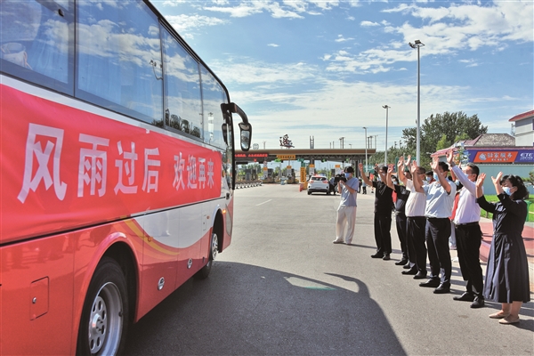 滴!滴!滴!8月23日9时30分,在平遥高速口,第一批因疫情滞留的游客踏上归程。欢迎再来平遥古城、古城欢迎你……道路两旁前来送行的志愿者向游客挥手告别。一辆辆有序行驶的离平车辆鸣笛回应着平遥人民的热情,向滞留期间平遥县提供的细致周到的服务表达感谢。