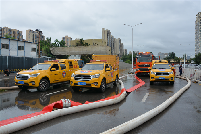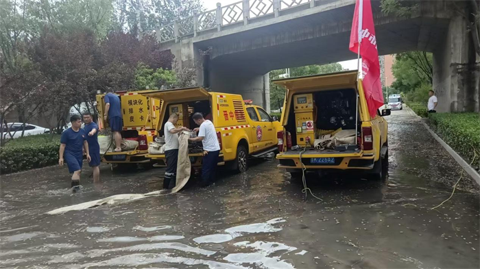 大队救援力量抵达安宁桥、迎宾桥内涝点后,迅速展开救援行动,安装水泵、铺设水带、选择排水点,利用大功率排涝车、机动皮卡排水车等设备抽排积水,队员们分组分段确保设备正常运行,还徒手清理排水井口的杂物,确保排水畅通。期间和顺中队9名同志到榆次进行体检,听闻抢险消息后在两名副中队长的带领下立即奔赴作业现场编队投入到排涝抢险战斗中。