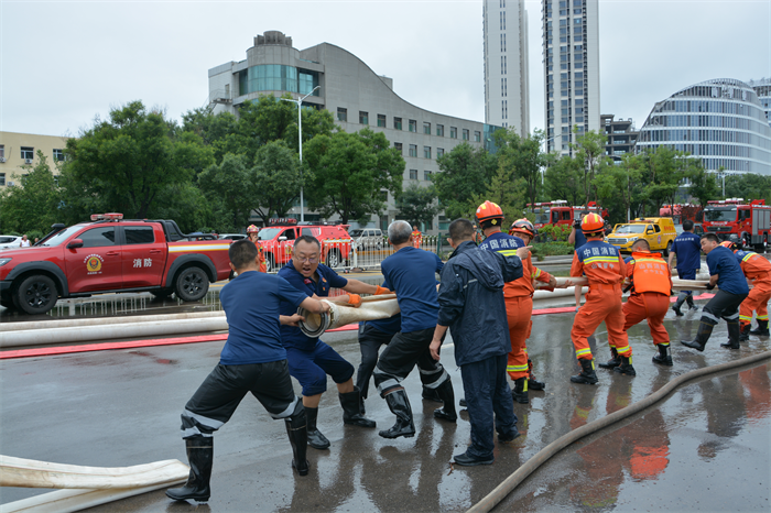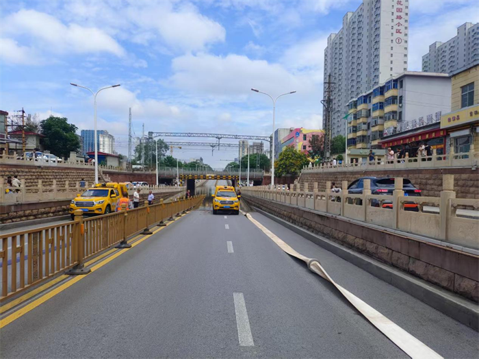 在抢险指挥部统一调配下,救援大队先后赶赴安宁桥、迎宾桥、顺城桥、文华桥1号2号、龙湖街交叉锦纶路下沉通道6处排水点进行抢险排水作业,10台排水泵同时运行排水能力达到5000立方每小时,经过11个小时连续奋战,截至目前,累计排水56000立方,已经抢通文华街1号桥、2号桥、安宁桥即将完全抢通,应急救援大队指战员仍然坚守在抢险一线排水排涝。
