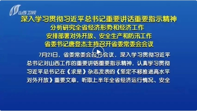 7月21日,省委常委会召开会议,深入学习贯彻习近平总书记对山西工作的重要讲话重要指示精神,认真学习贯彻习近平总书记在《求是》杂志发表的《坚定不移推进高水平对外开放》重要文章,听取上半年全省经济运行情况、安全生产形势和防汛工作情况汇报,研究部署下一步工作,审议通过《关于严格落实“四水四定”的实施方案》。省委书记唐登杰主持会议。
