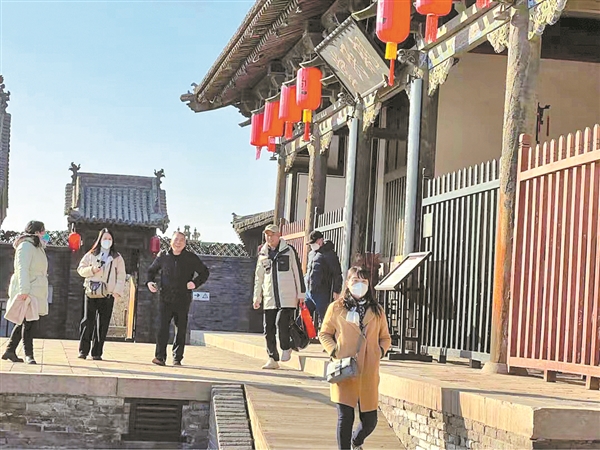 1月2日,正值元旦小长假,游人在平遥古城县衙景区游览。虽时值寒冬,但我市旅游市场开始回暖,客流量稳步上升。 通讯员 梁生仁 摄