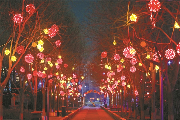 春节将至 ,一串串灯笼、一个个福字、一枚枚中国结,点缀在市城区各主要街道、绿地公园,将城市装扮得璀璨夺目,营造出浓浓的节日气氛。