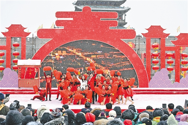 35岁的李俊杰来自河北,是历史文化遗产爱好者,在“平遥中国年”喜迎八方来客之际,他与家人来到这里,逛古城、赏花灯、品牛肉、看社火。平遥古城内的300余处文物、近3800座古民居让他赞叹不已,古城街道风格迥异的年俗活动更让他流连忘返。“听说在当地,社火表演叫‘闹红火’,红红火火的‘平遥中国年’让我们像回到家乡一样亲切。”