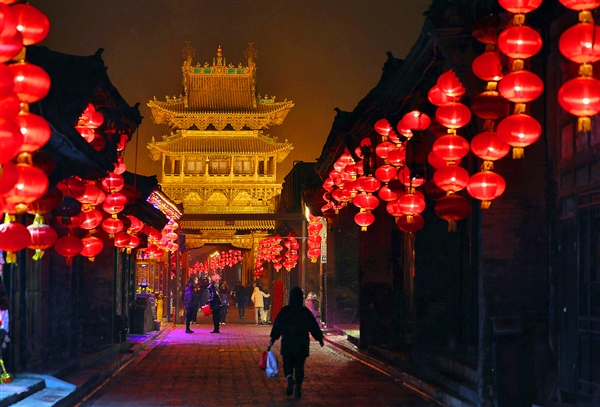 红火的平遥古城依旧热闹,滋养着各类文化元素生根发芽。挂起一串红灯笼,尝一口“亲疙瘩”,游览晋商古院,品味《又见平遥》……古城文化为平遥带来了更加旺盛的生命力,在“平遥年味”里,勾勒着幸福的模样。