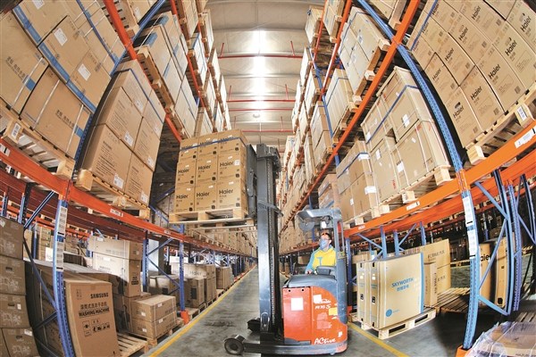 苏宁物流工作人员正在积极为用户配货,力求在最短时间将产品送达客户手中。记者 唐伟青 摄