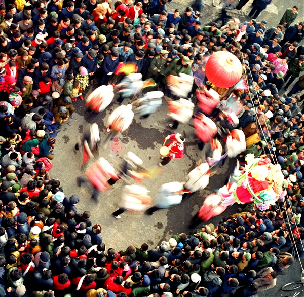 5.晋中作为中国社火之乡声名鹊起。图为群众街头闹社火。