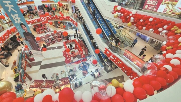 夜幕降临,商圈周边行道树上的彩灯分外耀眼,部分临街店铺还打着春节促销的广告,服装店里春装全面上新的宣传语提示着每个人,“春天,又来了。”