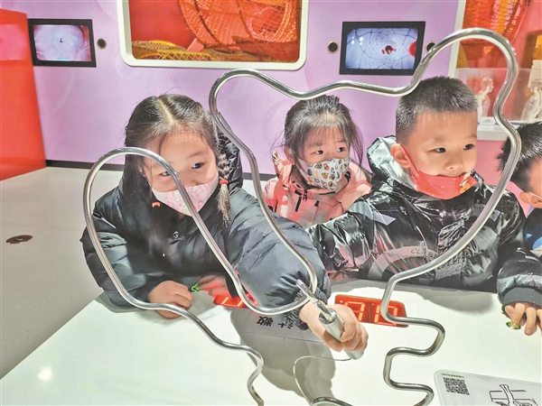 近日,沃德兰东大幼儿园的二十余名小朋友走进市科技馆,探索科学的奥秘,体验科学现象,激发参与科学活动的兴趣。记者 王晓赟 摄
