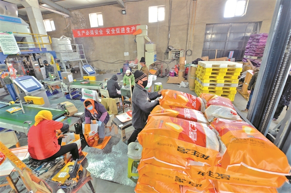 眼下正是春耕备耕的大忙时节,种子市场迎来销售旺季。3月19日,在晋中龙生种业生产车间,工人们正把包装好的种子装袋运往仓库。